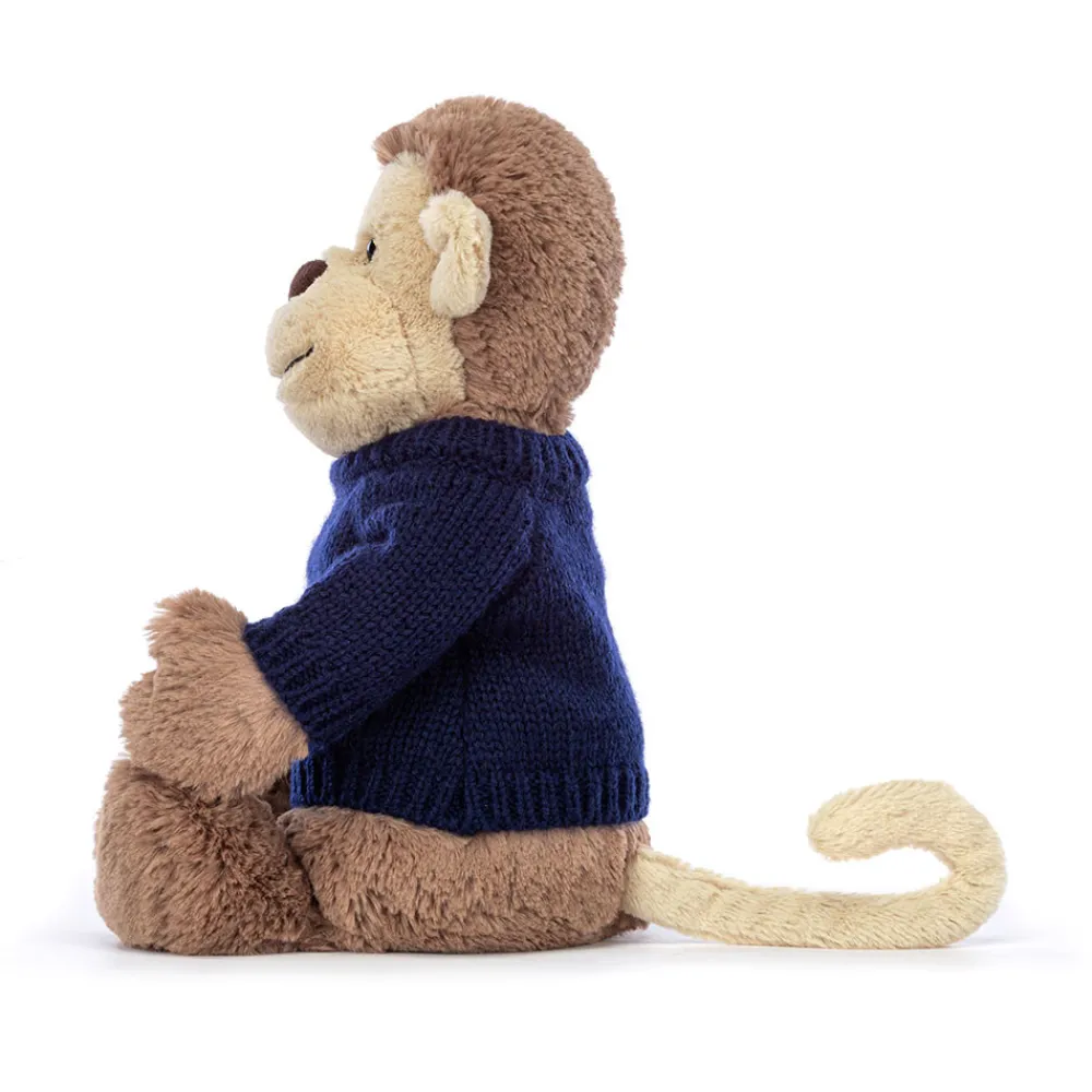Jellycat Bashful Monkey with Personalised Navy Jumper