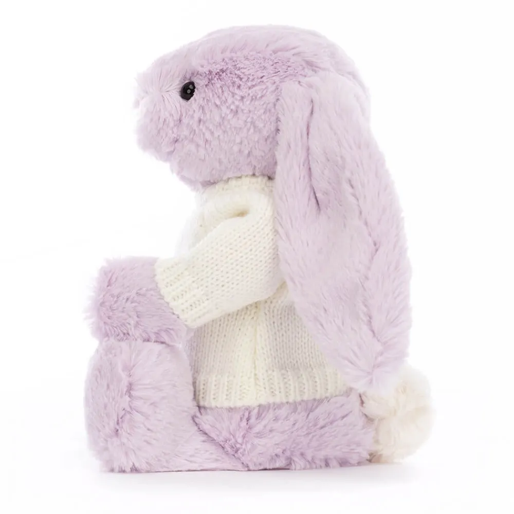 Jellycat Bashful Lilac Bunny with Personalised Cream Jumper